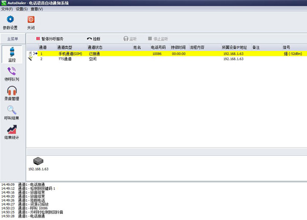 系統(tǒng)由催繳外呼軟件和GSM/CDMA電話設(shè)備所組成,安裝簡單,使用方便。不用申請電話線(只需購買手機sim卡);免裝驅(qū)動;通過以太網(wǎng)和電腦連接,電腦有網(wǎng)口就行,可以是pc、工控機或服務(wù)器。軟件是綠色版,免安裝,免裝數(shù)據(jù)庫,只需配置幾個參數(shù)。