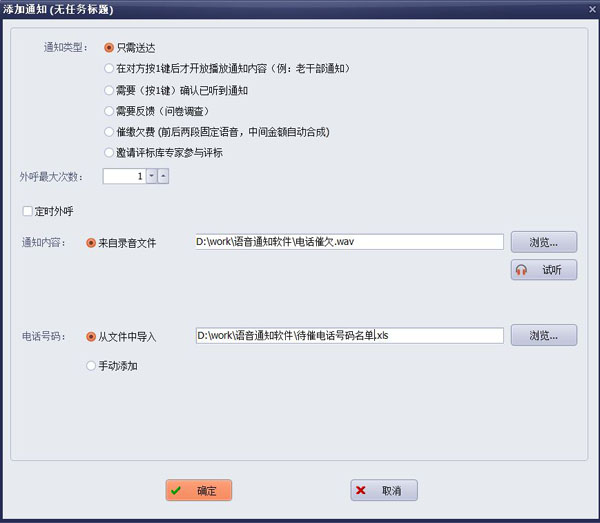 - 可以從Excel文件中,導(dǎo)入一批待催欠的號碼到待呼隊(duì)列中,并指定要播放的催欠語音文件。