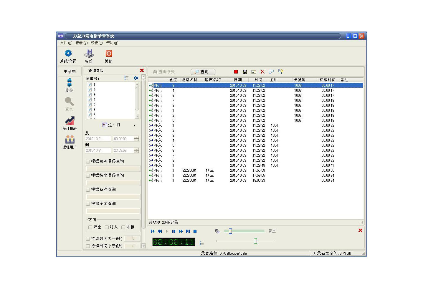 ????? 根據(jù)市場(chǎng)需要,力盈力泰推出了專業(yè)版電話錄音系統(tǒng)。和大眾版相比,具有以下新特性,包括可以通過(guò)web查詢播放錄音記錄、web實(shí)時(shí)監(jiān)控通話、多用戶權(quán)限控制和支持統(tǒng)計(jì)報(bào)表等。