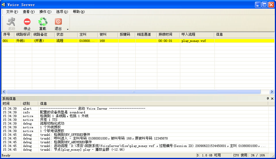 VoiceServer是基于語音板卡之上的新一代CTI中間件,支持主流的各種信令,同時具有高穩(wěn)定性、高密度、IVR流程可視化編輯、易于擴展、支持多流程等優(yōu)點。它可以輕松快捷地構建出IVR、電話查詢及人工服務系統(tǒng)和PBX等應用。目前,它支持東進D系列的大部分語音板卡以及keygoe交換機。
